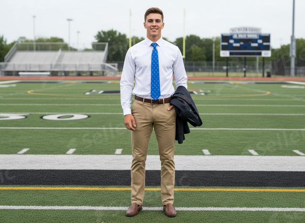 Show your Highlands spirit with three fun designs: the iconic Highlands H, the spirited football bird, and the timeless Highlands bluebird. Crafted exclusively for Tada Custom Creations using a silky satin polyester blend, these ties measure 8.2 cm wide by 147 cm long. Perfect for game days, banquets, or simply adding a splash of Highlands pride to any outfit. IN STOCK NOW.